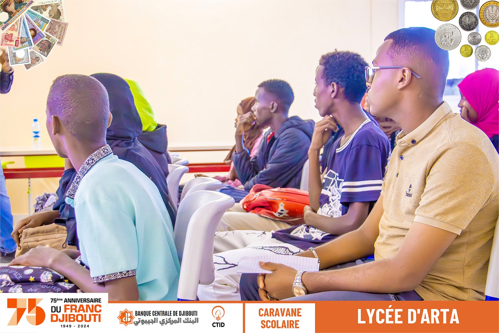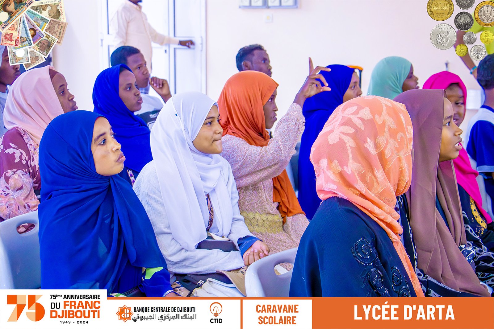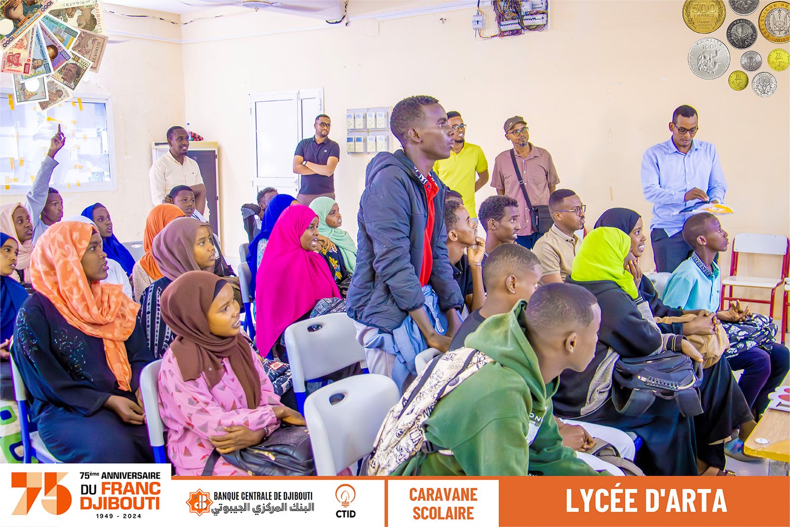 Notre visite au Lycée d'Arta a été accueillie avec beaucoup d'enthousiasme par les élèves qui se sont immergés dans le voyage en réalité virtuelle du Franc Djibouti. Ils ont participé activement au quiz, montrant leurs connaissances et leur curiosité sur l'évolution monétaire de la nation.