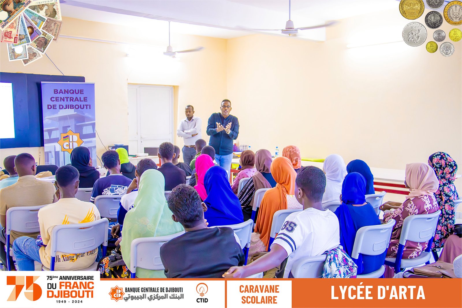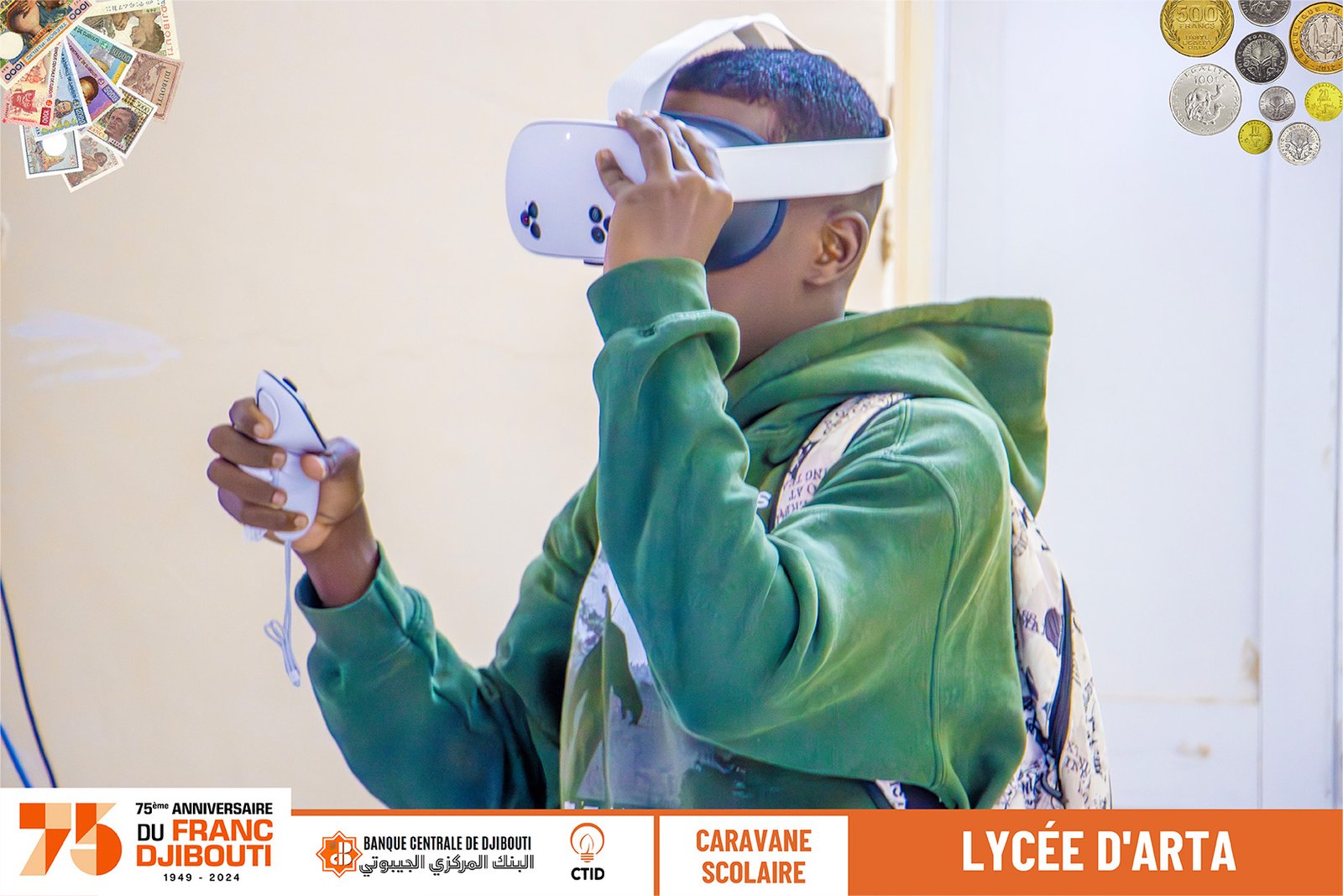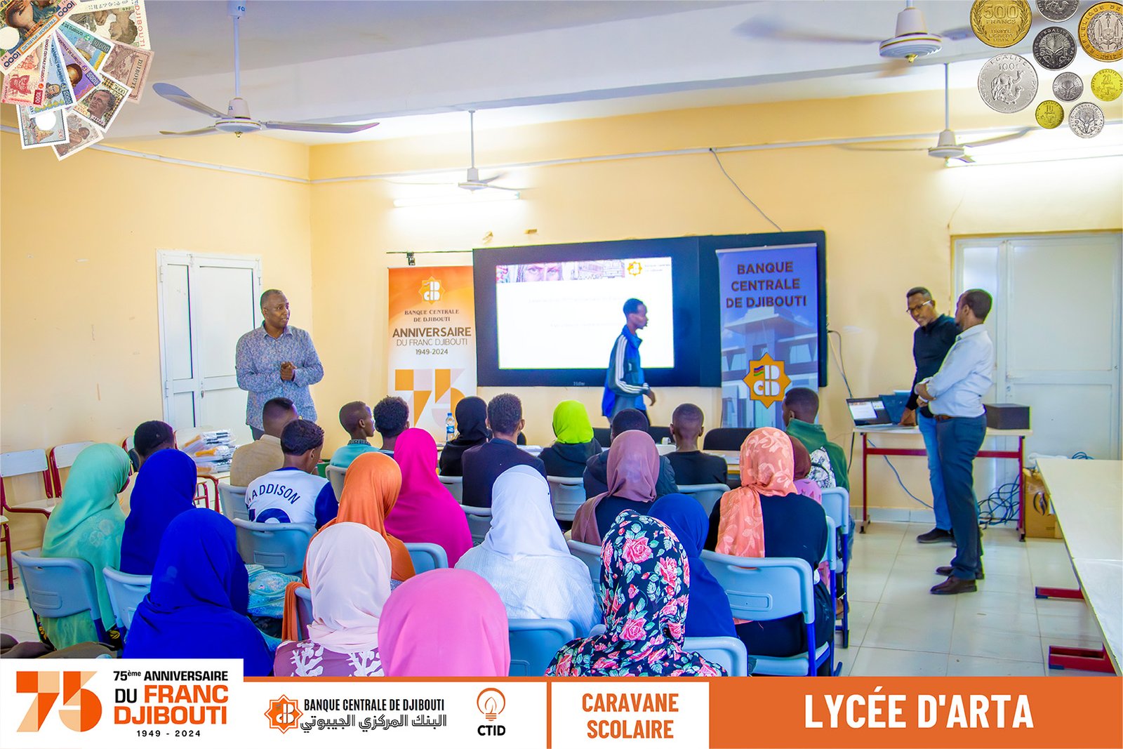 Notre visite au Lycée d'Arta a été accueillie avec beaucoup d'enthousiasme par les élèves qui se sont immergés dans le voyage en réalité virtuelle du Franc Djibouti. Ils ont participé activement au quiz, montrant leurs connaissances et leur curiosité sur l'évolution monétaire de la nation.